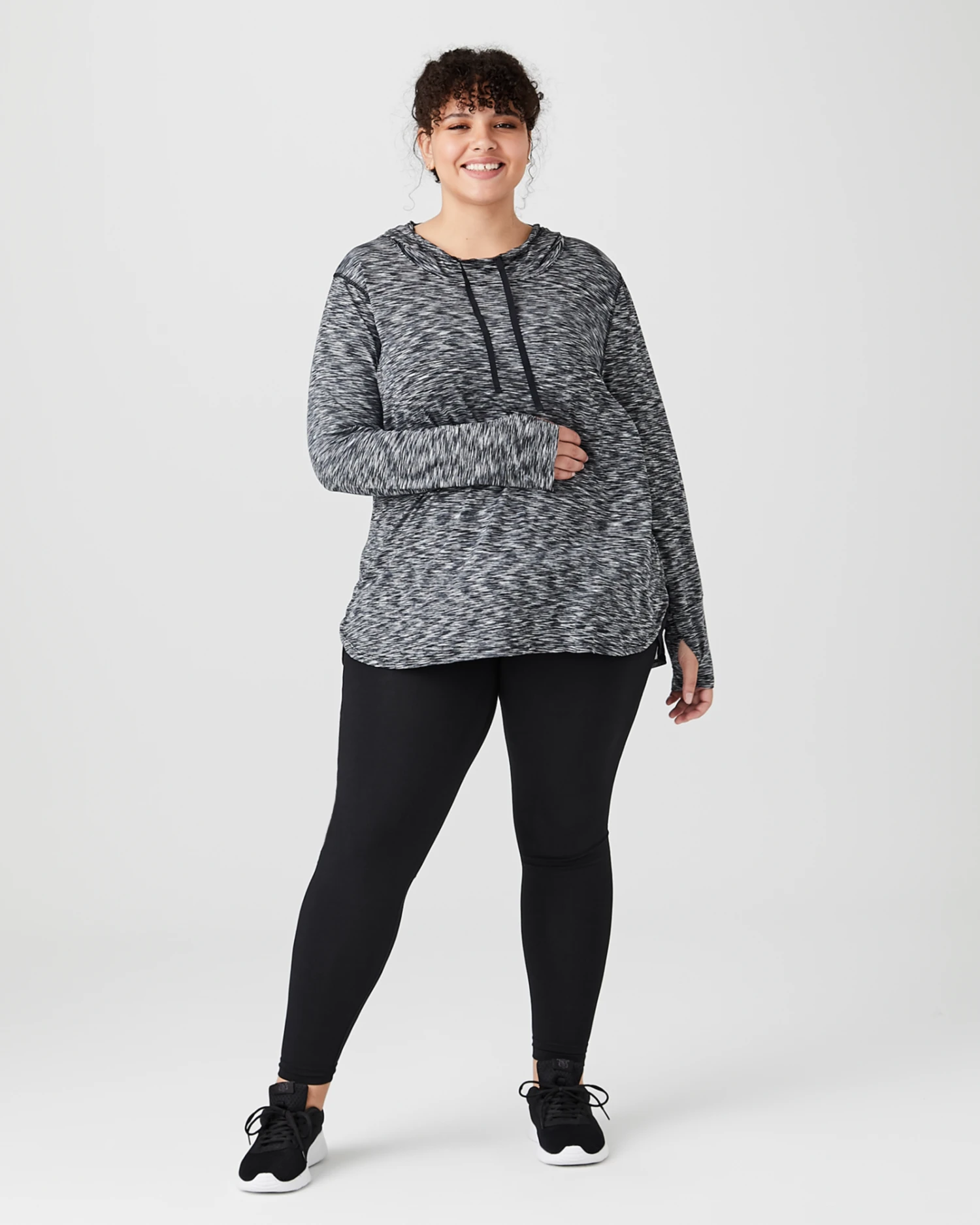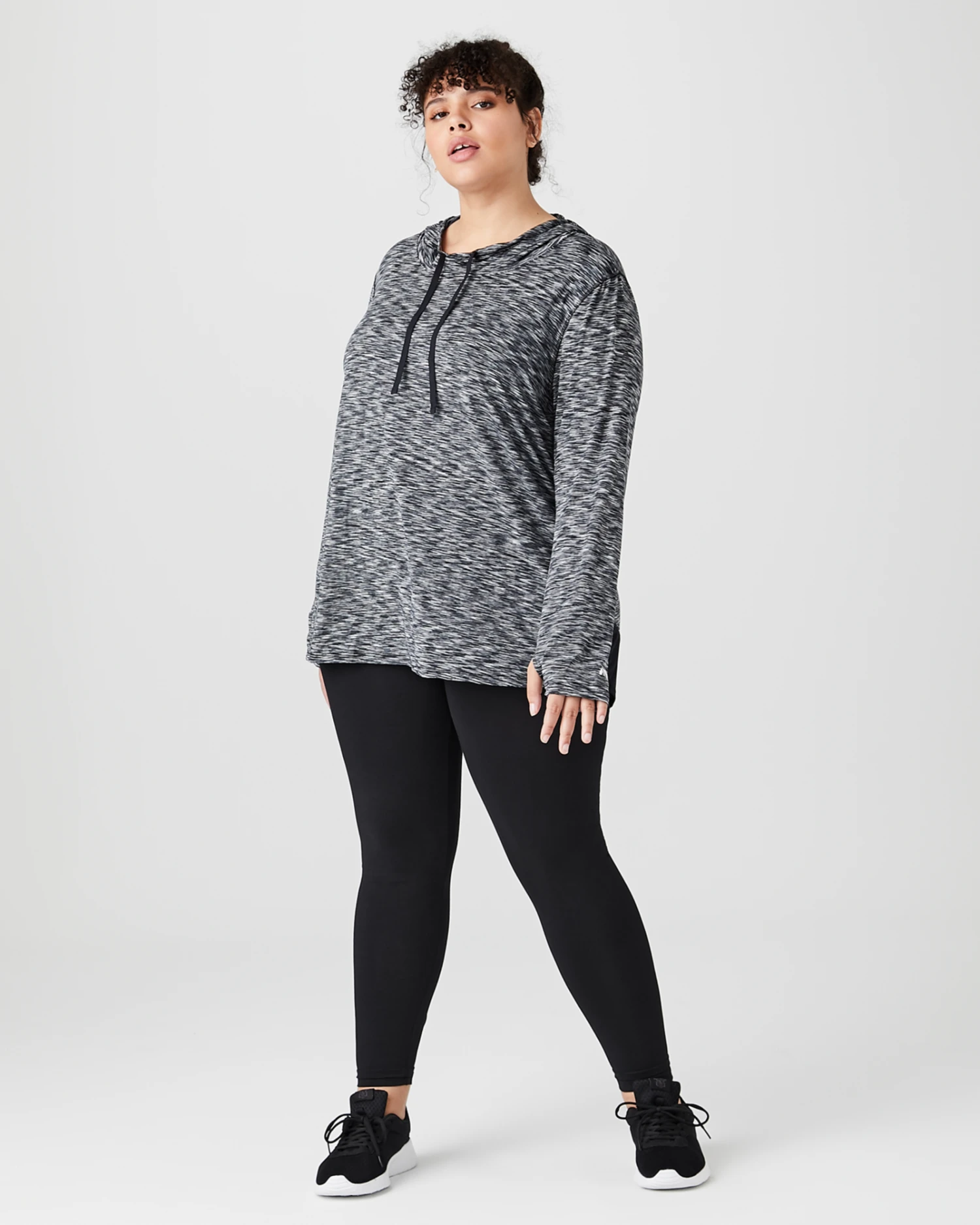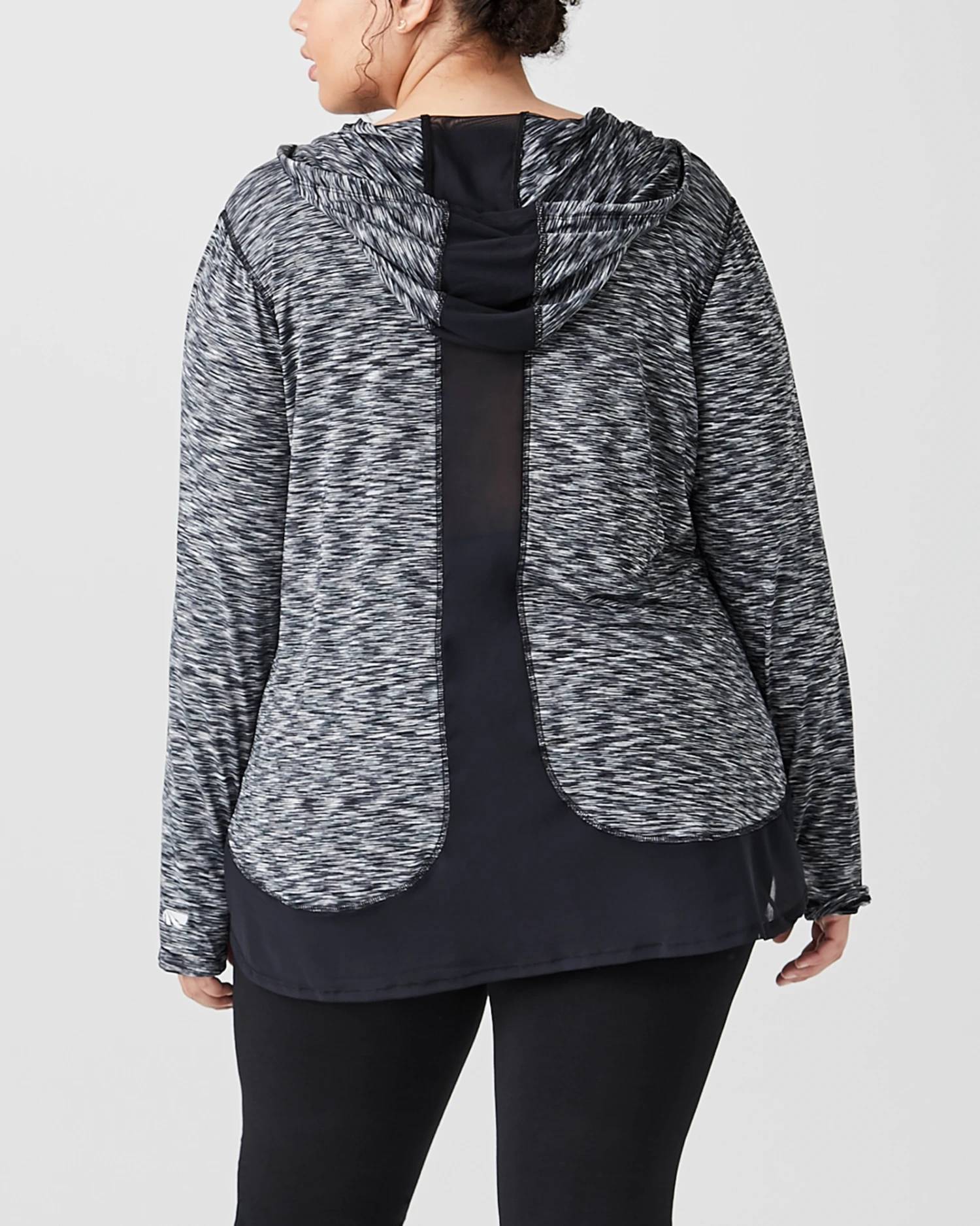 This lightweight pullover hoodie gives you just the right amount of warmth during your workout! The modern space dye print will look sleek and sporty with your favorite leggings and running shoes.